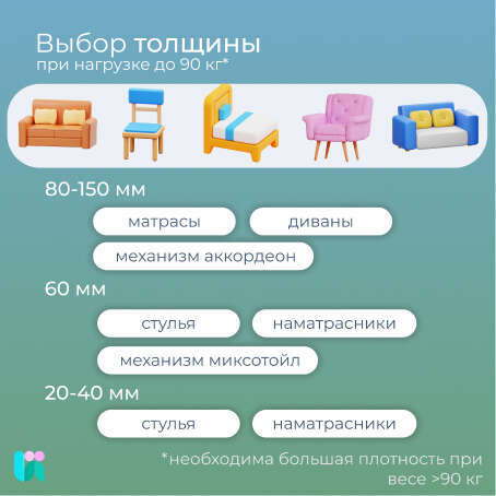 Идеально подходит для ремонта диванов, замены наполнителя в креслах, создания матрасов и других элементов мягкой мебели.